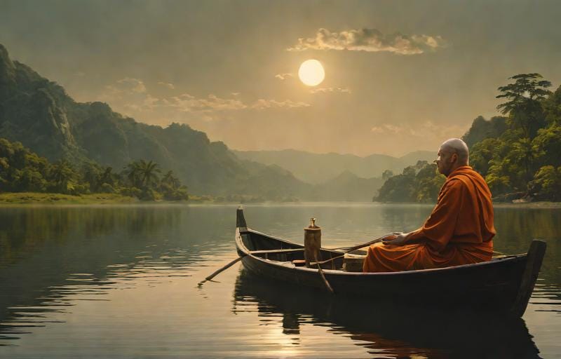 A monk decides to meditate alone. Away from his monastery, he takes a boat and goes to the middle of the lake, closes his eyes and begins to meditate. After a few hours of unperturbed silence, he suddenly feels the blow of another boat hitting his.